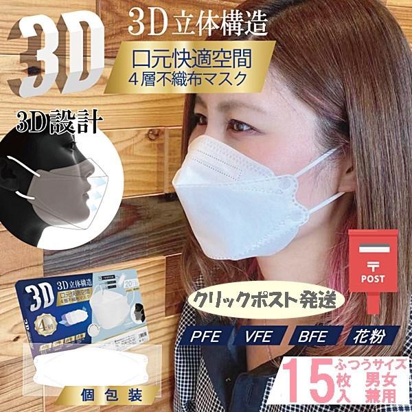 ヒロ・コーポレーション 3D 立体 4層 不織布マスク 15枚セット 個包装 PFE VFE BFE 花粉 男女兼用 4層構造 不織布 白 ホワイト 380 Yahoo!ショッピング