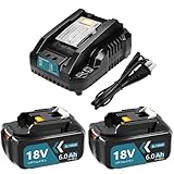 Amoresbat 互換 マキタ 18v バッテリー BL1860B 6000mAh大容量 2個 マキタ 18v バッテリー 充電器セット DC18RC充電器付き BL1815N BL1830B BL1860Bなど互換 BMS基板搭載 高耐久性 LEDランプ残量表示 PSE、CEマーク認証取得済 PL保険付